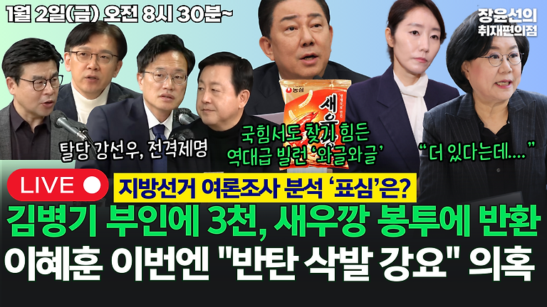 🔴[260102] 🔥탈당 강선우, 전격 제명.. 김병기 부인에 3천, 새우깡 쇼핑백에 반환?🔥