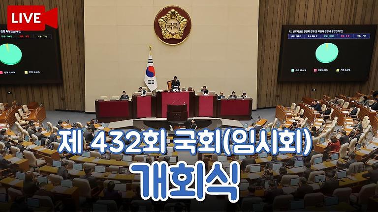 [🔴LIVE] 제432회 국회(임시회) 개회식 및 1차 본회의