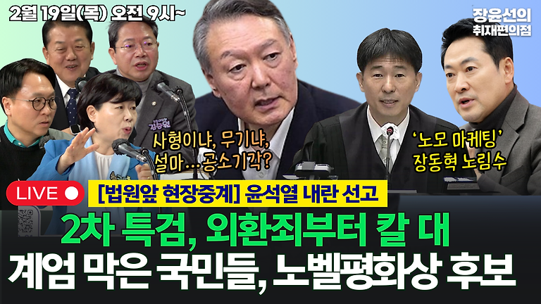 🔴[260219] [법원앞 현장중계] 윤석열 내란 선고-계엄 막은 국민들, 노벨평화상 후보-2차 특검, 외