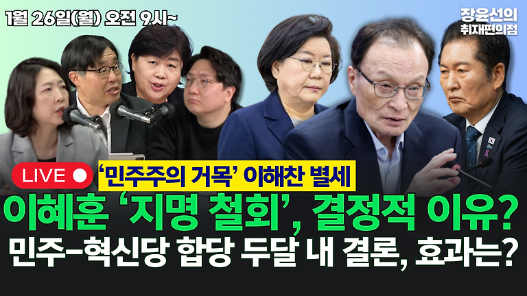 🔴[260126] '민주주의 거목' 이해찬 별세-이혜훈 결국 '지명 철회'-민주-혁신 합당 절차 돌입